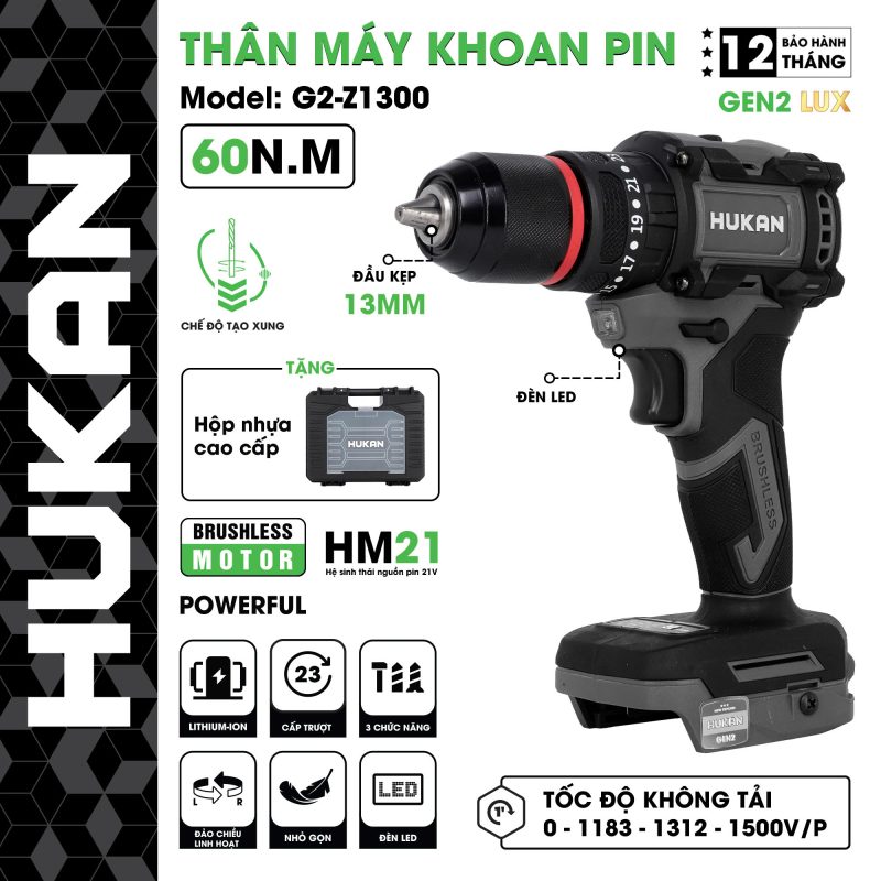 THÂN MÁY KHOAN PIN 13MM (GEN2 LUX) G2-Z1300 – Sức mạnh tối ưu, thiết kế hiện đại!