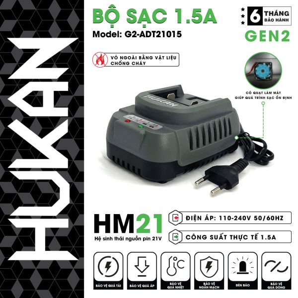 - Điện áp pin: 21V (chân pin phổ thông HM21)